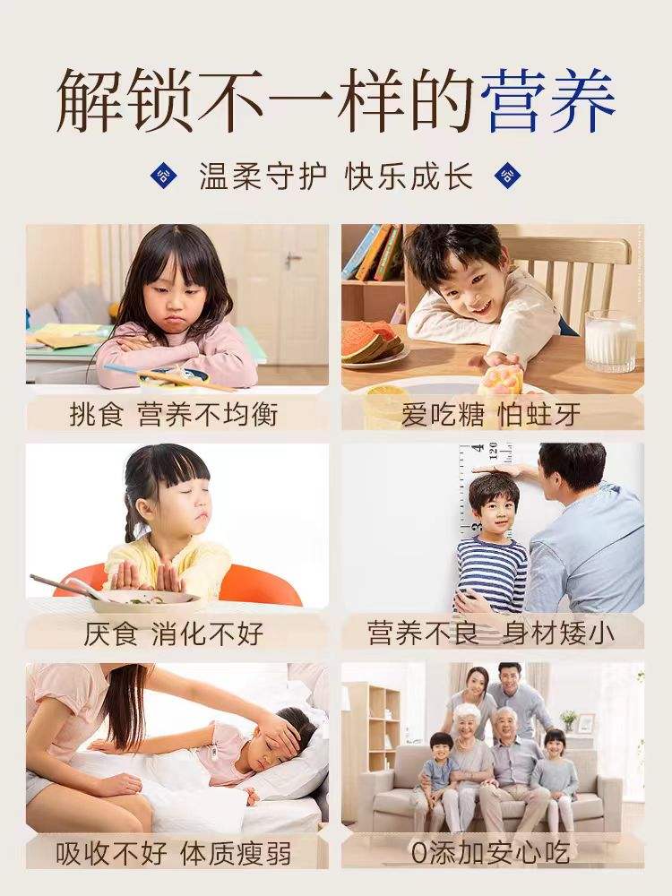 在“解锁不一样的营养,温柔守护,快乐成长”宣传文案下方,“谷掌柜骆驼奶片”还用图文结合的形式,暗示食用其产品的几大消费场景,包括“挑食营养不均衡”“爱吃糖怕蛀牙”“厌食消化不好”“营养不良身材矮小”“吸收不好体质瘦弱”等。在评论区,有不少买家留言是买给孩子吃,用来补充营养、帮助孩子长高等。